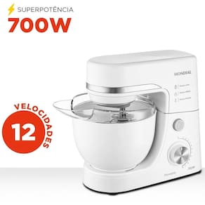 Batedeira Planetária Mondial BP-03W-2B Com 12 Velocidades 700W Branca Voltagem: 220V Descubra a potência e a elegância da Batedeira Planetária Mondial BP-03W-2B, perfeita para quem ama cozinhar com praticidade e alto desempenho. Com 700w de potência, ela é ideal para preparar desde bolos fofinhos até massas pesadas, como pães e pizzas.