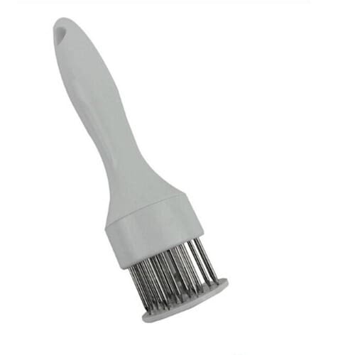 Ideal para amaciar carnes de maneira fácil e rápida com o mínimo esforço, este prático amaciador conta com sistema diferenciado composto por pequenos pinos em aço inox, perfeitos para quebrar as fibras da carne dura facilmente, amaciando as fibras, sem prejudicar a textura do alimento. Fabricada em plástico da mais alta qualidade, seu cabo possui desenho ergonômico, proporcionando conforto e segurança no manuseio. Tenha carne sempre macia a sua mesa Dimensões A x D: 18,5 x 5,0 cm Peso aproximado: 200 gramas Pontas de 3 Cm Material Plástico e Aço Inox
