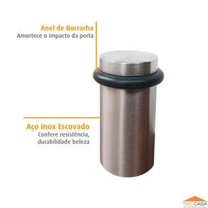 Seu formato cilíndrico é discreto em qualquer ambiente. Possui um anel de borracha super resistente que além de amortecer o impacto da porta também evita que a mesma fique marcada.
