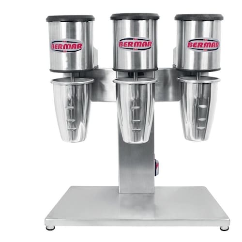 Batedor de Milk Shake e Açaí Triplo Inox Profissional BM Bermar. O Batedor de Milk Shake e Açaí Triplo três cabeça dará mais produção ao seu comércio. Fácil manuseio e compacto para utilizar em restaurantes, lanchonetes, fast foods, bares, sorveterias, entre outros. Em poucos instantes, obtém-se um Milk Shake ou Açaí cremoso. A base, cabeçotes e a coluna são produzidos em aço inox. Voltagem: 127V. Certificado INMETRO. Descrição: Motor: 500W - 60 Hz Voltagem: 127V Monofásico RPM: 18.000 Consumo: KW/h 0,5 Copo em alumínio repuxado e polido Estrutura em aço inoxidável Dimensões Comprimento: 250mm Altura: 500mm Largura: 435mm Peso líquido: 8,5 kg Ean: 7898226191755