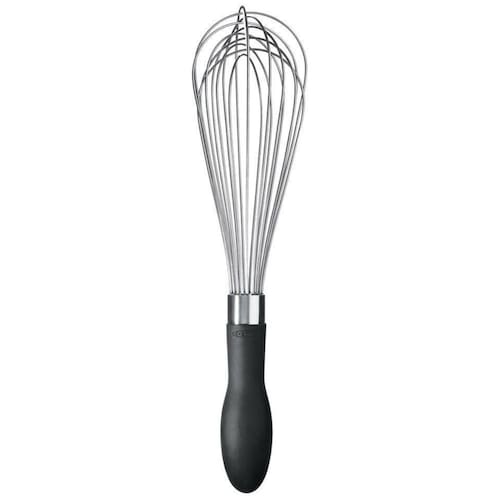 Batedor Fouet Grande Oxo 28Cm Cabo Silicone - preta Cabo robusto em silicone antideslizante para maior firmeza ao bater sua receita.