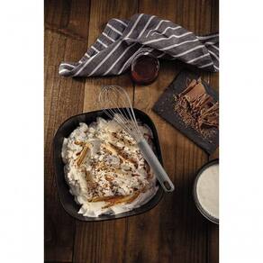 - Batedor de aço inox e cabo emborrachado, que resiste até uma temperatura de 210 C.