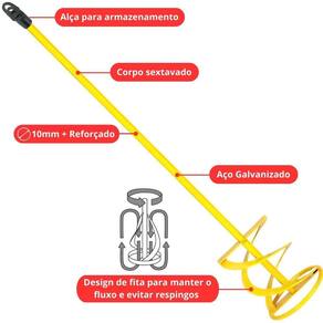 Com seu design otimizado, este batedor é capaz de misturar de maneira homogênea tintas, argamassa e gesso, economizando tempo e esforço na preparação de materiais.