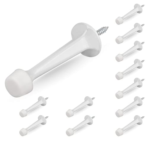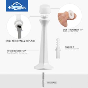 HOMOTEK Batente de porta rígido sólido resistente com ponta de borracha macia, tampa de porta de zinco fundido protege parede e porta - Instalação sem esforço: configuração fácil com uma furadeira e chave de fenda; monte diretamente nos rodapés para proteger paredes e portas de danos. Simplifica a instalação, tornando-o acessível para todos os níveis de habilidade; garante um ajuste seguro rapidamente - Proteção diária confiável: Base de 2,5 cm, parafuso 13/40.6 cm, projeção de 2-7/20.3 cm da superfície de montagem. Design resistente de zinco e borracha; evita furos e arranhões na maçaneta ao absorver impactos de portas pesadas e balançantes. Ideal para proteger portas internas e externas contra o desgaste diário - Maior durabilidade: construído a partir de zinco robusto e borracha resistente; resiste ao uso frequente sem dobrar ou quebrar. Oferece desempenho consistente em áreas de alto tráfego, garantindo proteção duradoura para sua casa - Integração elegante: acabamento elegante complementa várias decorações de casa; combina perfeitamente com outros acessórios pretos. Adiciona elegância enquanto fornece proteção confiável, melhorando a estética do seu interior - Uso versátil: adequado para todos os tipos de cômodos e portas; perfeito para proteger paredes e portas em toda a sua casa. É um presente atencioso de inauguração de casa, oferecendo utilidade e estilo para novos proprietários