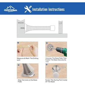 Nossas tampas de porta de mola são projetadas para serem instaladas na parede, porta ou rodapé para evitar danos na parede ou na porta. As pontas de borracha firme ajudam a entrar em contato suavemente com parede ou porta para evitar danos. Basta instalar fixando à superfície com parafuso de montagem anexado. Nossas batentes de porta podem ser aplicadas em qualquer cômodo. Como instalar ou substituir nosso batente de porta de mola? Passo 1: Meça e marque o local de aparafusamento. Passo 2: Desparafuse a placa de base e prenda a base com segurança com chave de fenda ou qualquer outra ferramenta. Passo 3: Alinhe o orifício na placa de base. Passo 4: parafuse a parte da mola dentro da base como foi recebida. Funções: AMIGÁVEL PARA CRIANÇAS Econômico Instalação simples Mantém suas paredes e portas em perfeitas condições. Perfeito para remodelar a casa - Muito fácil de instalar e substituir – Nossos batentes de porta podem ser instalados em seus rodapés ou diretamente em suas portas simplesmente usando os parafusos incluídos, sem necessidade de ferramentas especiais. - Quantidade suficiente para uso – 52 peças no total. Use-os atrás de cada porta da sua casa para combinar lindamente com todos os seus outros acessórios e decorações de cetim ou níquel escovado. Você pode até mesmo dar para a família ou amigos para o presente perfeito de inauguração de casa. - Proteja suas portas internas, externas e paredes de danos – Nossa base ampla e design de pontas de amortecedor de borracha firme restringe as portas pesadas e rápidas de bater em suas paredes e criar aqueles temidos orifícios de maçaneta, enquanto também protege suas portas de madeira, aço e fibra de vidro de marcas e arranhões. - Dimensão do produto – Completo com um parafuso de 33/16" e base de metal de 15/16", projeção: 3-1/8" da superfície de montagem; Material: aço; (consulte nosso desenho para obter detalhes) - Qualidade confiável – Sua experiência com o produto é nossa diretriz. Se você tiver alguma dúvida, envie-nos um e-mail e com você dentro de 24 horas. Se você não estiver totalmente satisfeito, basta enviá-los de volta para um novo conjunto ou um reembolso total! Sem perguntas!