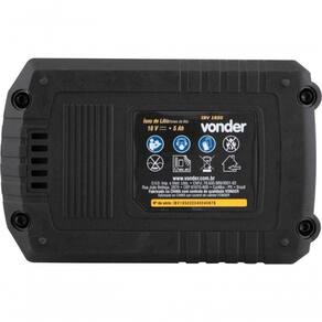 Indicada para a linha de ferramentas a bateria intercambiável VONDER. Carregadores indicados: carregador de bateria 18 V ICBV 1805 (6004180500), carregador de bateria carga rápida 18 V ICBV 1806 (6004180600), carregador de bateria duplo 18V ICBV1841 (6004184100), carregador de bateria rápido duplo (6004184200) ou carregador de bateria para automóveis 12 V (6004184300).