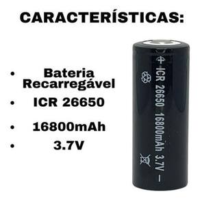 Este anúncio contém: 4 Baterias 26650; Características: Bateria de alta capacidade; Modelo: 26650; Capacidade: 16800mAh; Voltagem: 3.7v; Dimensões: Altura: 7 cm; Largura: 3 cm; O produto anunciado é uma bateria 26650, não é uma pilha, não utilize este produto para substituir pilhas pois pode queimar o seu aparelho. Estas baterias são projetadas para se adaptar perfeitamente a uma variedade de dispositivos, desde lanternas até microfones e outros equipamentos eletrônicos. A sua versatilidade torna-as indispensáveis para qualquer pessoa que dependa de fontes de energia eficientes e de alta qualidade. Com uma incrível capacidade, estas baterias fornecem uma fonte de energia robusta e duradoura. Nunca mais se preocupe com quedas de energia repentinas ou interrupções nas suas atividades. Desfrute de horas ininterruptas de iluminação potente ou de gravações impecáveis. Esqueça a necessidade constante de comprar pilhas descartáveis. Com as Baterias Recarregáveis, você pode recarregar facilmente para um desempenho consistente. Além de ser uma escolha sustentável, você economizará dinheiro a longo prazo, investindo em um produto que pode ser recarregado centenas de vezes. Orientações Quanto a Bateria: Não deixe sem carga pois isto afeta diretamente a vida útil da Bateria. Carregamento total de 10 à 12 Horas. Aguarde até que sua total capacidade de carga esteja completa. Seja bem vindo Você chegou em uma equipe especializada para melhor te atender. Todas as fotos são de produtos reais e de exclusividade da nossa loja, sendo assim apenas nós temos o direito de imagem sob qualquer mercadoria anunciada. Veja nossos outros produtos um pouco mais abaixo em Mais Anúncios do Vendedor. Você chegou até aqui se você tem alguma dúvida pendente sobre o produto anunciado nos diga. Estamos sempre aqui para lhe responder sempre A Nossa empresa é extremamente e especializada com produtos de alta qualidade, pois nosso objetivo é ver vocês clientes satisfeitos com os produtos e atendimento. Perguntas e Respostas: Vocês enviam para todo o Brasil Quanto fica o e qual o prazo de entrega R: Enviamos para todo o Brasil. Para conferir o ou o prazo basta verificar no campo acima, ao lado das fotos, ou entrar em contato conosco para mais informações, caso ainda tenha dúvidas. Esse produto vem bem embalado R: Sim, todos nossos produtos são muito bem embalados para evitar qualquer chateação para nossos clientes. Ele vem igual está na foto R: Sim, as fotos de nossos produtos são tiradas por nós, para garantir melhores detalhes de informações visuais, garantindo assim melhor entendimento de como realmente é o produto. Produtos que Utiliza essa Bateria: Lanternas LED de alto desempenho; Lanternas de mergulho; Sistemas de energia portátil ou bancos de energia; Lanternas táticas recarregáveis; Equipamentos de camping, como lanternas de acampamento ou carregadores solares portáteis; Lanternas de busca e resgate; Equipamentos de fotografia, como flashes ou iluminadores LED; Lanternas de bicicleta ou faróis para bicicletas elétricas; Lanternas de segurança para uso em locais remotos ou de emergência; Equipamentos de segurança industrial, como lanternas intrinsecamente seguras. Marca: Não Informado Ean: 7902751431627