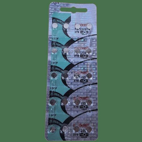 Utilizada em relógios Fabricação no Japão Marca Maxell Modelo 379 Tamanho da pilha SR521SW Forma Botão Formato de venda Cartela Unidades por kit 5 Tamanho: 5.8mm, altura 2.15mm Tensão V : 1.55V Corrente A : 16mAh Química: Óxido de Prata É recarregável: Não