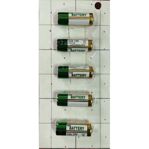 Bateria A23 12V Super Power Com 5 Unidades Especificações técnicas; Características do produto: Capacidade mah : 38 mah Modelo: 23a / a23 / 23ae também conhecida como: lrv08 / l1028 / rvo8 / 23a / ms21 / Mn21 / e23a / k23a / v23ga / 8lr932 / 8lr23 / vr22 / 8f10r Marca: gp ultra high voltage Indicada para: controles remoto de carro, alarmes, portões, Lanternas, brinquedos etc... Vida útil: descartável Medidas aproximadas do produto: Comprimento 0,9cm x altura: 2,8cm x largura: 0,9 cm Peso:50,00 gramas : 3 meses não abrange mal-uso ou gasto de bateria