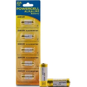 Bateria alcalina descartável de 12V, modelo A23, com capacidade de 38 mAh. Ideal para controles remotos, alarmes, portões, lanternas e brinquedos. Cartela com 5 unidades.