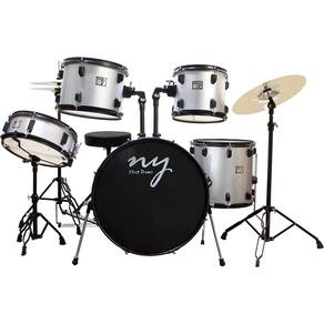 Bateria Acústica New York F1rst, com ferragens pretas e acabamento metalizado. Especificações- Marca: NY F1rst- Modelo: 2TE- Cor: Prata- Ferragens: Pretas- Peles: Transparentes- Caixa: MadeiraComponentes do kit:- 01 Tom 10” x 9”- 01 Tom 12” x 9” - 01 Caixa 14” x 5,5”- 01 Surdo de Chão: 14” x 14”- 01 Bumbo 20” x 14”- 01 Estante Reta Retrátil- 01 Estante de Caixa- 01 Máquina de Chimbal- 01 Banco- 01 Pedal de Bumbo- 02 Pratos Chimbal - 01 Prato Ataque- 02 Baquetas- Dimensões da Embalagem (AxLxP): 57 x 59 x 78 cm*Imagens meramente ilustrativas