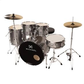 A bateria acústica michael trinity dmt222, com bumbo 22, impacta pelo visual moderno e timbre equilibrado. Possui um kit completo, de 5 peças, com destaque para a caixa com pele porosa e os tons rasos oferece ainda pés diferenciados, extralongos no surdo e telescópicos, no bumbo, além de caixa com automático. Vem com estante de prato, máquina de chimbal, pratos hit hat e , pedal de bumbo e par de baquetas. A trinity dmt222 traz peças com casco em poplar, que garante uma melhor ressonância e controle de harmônicos, proporcionando incríveis possibilidades sonoras em diversas afinações. Ela possui pés telescópios no bumbo, além de pés extralongos no surdo 62cm , componentes que dão mais conforto e facilidade no alinhamento dos tambores, além de segurança e estabilidade. A bateria michael dmt222 possui uma configuração imponente, com bumbo de 22x 16, tons rasos de 10x08 e 12x09, surdo de chão de 16x16 e caixa de 14x5,5. É um set up muito utilizado por bateristas que curtem intensidade. A trinity vem com peles de filme simples bumbo, surdo e tons , que valorizam os harmônicos e prolongam as notas. Já a pele porosa, da caixa, possui uma sonoridade mais seca e definida, dando boa resposta aos ataques e rufos. Esta bateria acústica possui um visual arrebatador, com opções de cores clássicas ou brilhantes, que irão impressionar bateristas de todos os estilos. Possui kit completo, com estante de prato reta , pedal de bumbo, banco acolchoado, pratos de chimbal e de ataque , além par de baquetas, itens de qualidade que irão proporcionar uma experiência musical completa aos bateristas. Madeira: casco em poplar Acabamento em celuloide. Hardware: Tons 10x 08 e 12x09 Surdo de chão 14x12 Bumbo 22x16 Caixa 14x 5,5 com 8 afinações com automático do tipo trava Máquina de chimbal Ferragens: Ferragens resistentes, Acompanha estante de prato reta. Pés do surdo extralongos com 62mm. Bônus: Banco acolchoado pedal de bumbo prato de chimbal hit-hat e prato de ataque Par de baquetas 5a. Peles: Peles filme simples para bumbo, surdo e tons. Pele porosa para caixa.