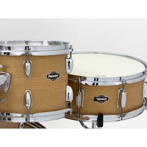 Bumbo 22x16" com 16 canoas Caixa 14x5,5" com 8 canoas Tom 10x08" com 10 canoas Tom 12x09" com 10 canoas Surdo 16x14" com 16 canoas Casco 100% Poplar com bordas de 45 graus Aros 1.4mm triple-flanged Peles filme único (clear nos tons, bumbo e surdo / coated na caixa) Ferragens cromadas completas (máquina de chimbal, estante de caixa, estante de prato reta, pedal de bumbo e banco) Pratos inclusos: Chimbal 14" e Ataque 16" Acabamento revestido em Natural Wood Garantia de 3 meses Marca: Não Informado