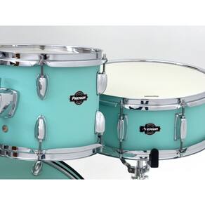 Bumbo 22x16" com 16 canoas Caixa 14x5,5" com 8 canoas Tom 10x08" com 10 canoas Tom 12x09" com 10 canoas Surdo 16x14" com 16 canoas Casco 100% Poplar com bordas de 45 graus Aros 1.4mm triple-flanged Peles filme único (clear nos tons, bumbo e surdo / coated na caixa) Ferragens cromadas completas (máquina de chimbal, estante de caixa, estante de prato reta, pedal de bumbo e banco) Pratos inclusos: Chimbal 14" e Ataque 16" Acabamento revestido em Surf Green Garantia de 3 meses Marca: Não Informado