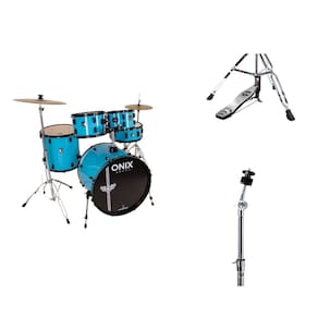 CARACTERÍSTICAS Pé de bumbo telescópio Caneca de fixação refprçada Pele de bumbo com anel abafador Cascos de 7 MM Caneca tipo abraçadeira Automático de gaveta Tom Holder - Joint Ball Travas com Memórias Base de banco fundida Banco reforçado Estante de caixa com cesto Borboleta "Safecymbals" Pedal de bumbo profissional Base de metal Corrente dupla Sistema de Mola com Rolamento HI HAT 14" e Crash/Ride 18" Estante Reforçada