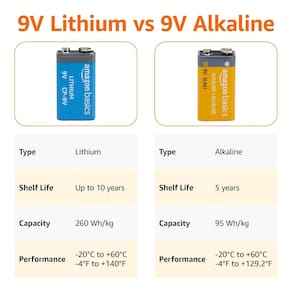 Pacote com 4 baterias Amazon Basics de lítio de 9 volts de alto desempenho, vida útil de 10 anos, energia de longa duração