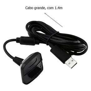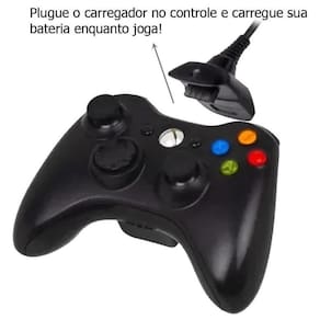Conjunto composto por bateria recarregável com cabo e carregador para controle de videogame 360 na cor preta, garantindo autonomia prolongada e carregamento prático sem interrupções durante o jogo.