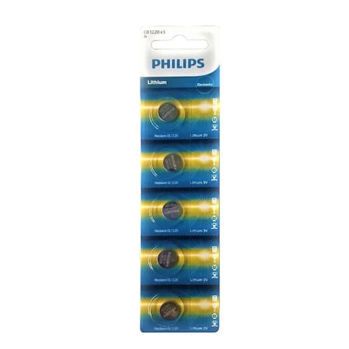 Bateria Cr1220 Philips Cartela 5 UnidadesESPECIFICAÇÃO:Pilha CR 1220Dimensões:Diâmetro: 12,5 mmEspessura: 2,0 mmPeso: 0,8 gACOMPANHA O PRODUTO:1 Cartela contendo 5 unidades de CR1220GARANTIA:90 dias a partir do recebimento