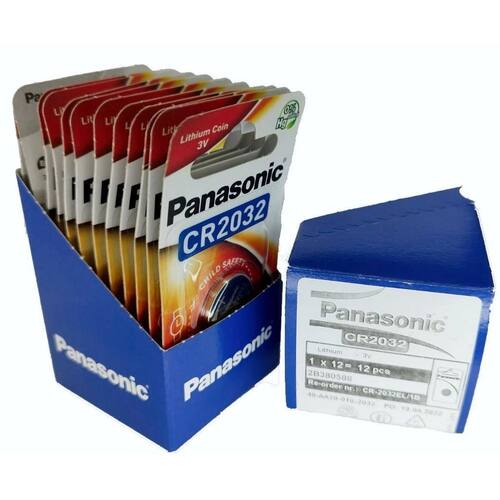 1 caixa com 12 unidades da bateria cr2032 panasonic , totalizando doze unidades.