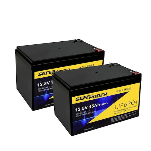 SEFEPODER Bateria de lítio de ciclo profundo 12V 15Ah LiFePO4 - ?Excelente desempenho?: As baterias Sefepoder LiFePO4 são feitas de células de alta qualidade com alta densidade de energia, longa vida útil, bom desempenho de segurança, sem efeito de memória, etc. As baterias têm apenas 1/3 do peso das baterias de grafite-ácido da mesma capacidade! Mais segurança e ecológicas do que as baterias de grafite-ácido. - ?Seguro e confiável?: As baterias LiFepo4 não queimam quando sobrecarregadas, sobredescarregadas, sobrecorrente ou curto-circuito, e podem suportar altas temperaturas sem se decompor, com proteção BMS integrada contra sobrecarga, sobredescarga, sobrecorrente e curto-circuitos. Pode ser conectado em série ou paralelo, até 4 baterias idênticas em série, carga rápida de 6A, descarga de saída até 16A contínua e pulso 3C. - ?Longa vida útil?: Baterias de íon de lítio mais de 2000 ciclos sem problemas, enquanto as baterias tradicionais de grafite-ácido têm apenas 200-300 ciclos, sem efeito de memória, não importa em que estado a bateria está, uma carga pode ser usada. - ?Aplicações amplas?: Amplamente utilizado na maioria dos campos, como: iluminação, roteador de 12 V, trailer/acampamento ao ar livre, brinquedos de equitação, RV, rodas elétricas, localizador de peixes, scooters, rádio amador, energia solar/eólica, roteador de 12 V, caiaque, aplicações fora da rede, etc. - ?O que você recebe?: 1 bateria LiFePO4 de 12 V 15 Ah, garantia de 12 meses, se você tiver alguma dúvida, sinta-se à vontade para entrar em contato conosco (use o carregador especial LiFePo4, com o carregador SLA automático pode não estar cheio)