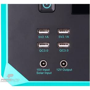 Possui 4 Portas USB e 2 Portas DC e é compatível com kit automotivo DC12V de 5,5mm com adaptador DC do acendedor de cigarros, para aspirador de pó, bomba de encher pneu, chave elétrica, geladeira, etc.