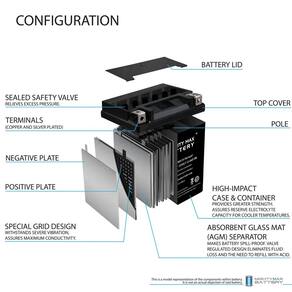 - YB14L-A2 é uma bateria de grafite-ácido selada (SLA) de 12V 12AH 210 amplificadores de arranque a frio (CCA) - Dimensões: 5,27 polegadas x 3,50 polegadas x 6,53 polegadas. Polaridade: positiva à direita, negativa à esquerda. A listagem é apenas para baterias e parafusos. Nenhum chicote de fios ou acessórios de montagem incluídos.