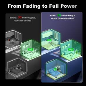 Limpe 3.000 sq. pés . casa com uma única carga! O tempo de execução de 65 minutos lida com cômodos, escadas e carros consecutivos sem interrupções. Os pais podem aspirar salas de jogos, cozinhas e zonas de animais de estimação rapidamente antes da chegada dos convidados.