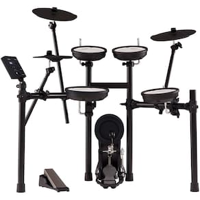 Bateria Eletrônica Digital Roland Td-07Kv Td07 Kv Compacta Recursos Padrão - Módulo TD-07 com 25 kits de fábrica, 25 kits de usuário, e 143 instrumentos - Pads de caixa e tom com as lendárias peles Mesh Head Roland de duas camadas, e tensão ajustável - Pad de caixa PDX-8, de 8 polegadas e sensores de pele e aro independentes, para atribuir sons diferentes - Três pads de tom PDX-6A de 6 polegadas - Pad de bumbo KD-10, com rebote natural e sensação confortável, além de minimizar o ruído e a vibração - Pratos com 12 polegadas e função de abafar o som - Chimbal de 10 polegadas e pedal que controla precisamente as posições entre chimbal aberto e fechado - Rack de bateria robusto com construção em metal - O Bluetooth integrado permite transmitir som sem fio de smartphones, tablets e outros dispositivos Bluetooth, e enviar dados MIDI para aplicativos de música - Metrônomo avançado integrado, com a capacidade de ajustar a fórmula de compasso, tipos de célula rítmica e o tom do clique - Função Coach - treinador interno que fornece ferramentas interativas para desenvolver a habilidade musical e monitorar o progresso do baterista - USB para gravação de áudio e dados MIDI em softwares de música no computador - Expansão de um segundo prato de ataque prato CY-8 V-Cymbal e suporte MDY-Standard vendidos separadamente Configuração Do Kit: - Módulo: TD-07 - Bumbo: KD-10 - Caixa: PDX-8 - Hi-hat: CY-5 - Pedal controlador de chimbal: Detecta toques intermediários entre aberto e fechado - Tom: PDX-6A X 3 - Prato de ataque: CY-8 - Prato de condução: CY-8 - Rack: Rack de bateria com 4 hastes - Acessórios: Guia de configuração, Manual do proprietário, Folheto Usando a unidade com segurança, Adaptador AC, Cabo de conexão especial Pedal de bumbo e banco não estão inclusos. Toms não são compatíveis com o uso de rim-shot. Cód.: TD-07KV : 12 meses Imagens meramente ilustrativas. Marca: Não Informado