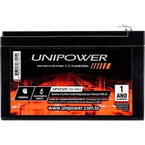 Bateria Estacionária Selada 12v 12ah Vrla Up12120 Unipower A Bateria Estacionária Selada 12V 12Ah VRLA UP12120 é o modelo ideal para aplicações em equipamentos médicos e nobreaks. Atualmente a UNIPOWER é líder no Brasil em baterias estacionárias. Fornece soluções completas em armazenamento de energia que incluem um portfólio completo para as mais diversas aplicações como telecom, nobreaks (UPS), sistemas de segurança, sistemas de iluminação de emergência, sinalização, equipamentos médicos e entre outros.