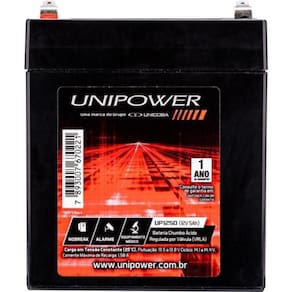 Bateria Estacionária Selada 12v 5ah Vrla Up1250 Unipower A Bateria Estacionária Selada 12V 5Ah VRLA UP1250 é o modelo ideal para aplicações em caixas de som, equipamentos médicos e nobreaks. Atualmente a UNIPOWER é líder no Brasil em baterias estacionárias. Fornece soluções completas em armazenamento de energia que incluem um portfólio completo para as mais diversas aplicações como telecom, nobreaks (UPS), sistemas de segurança, sistemas de iluminação de emergência, sinalização, equipamentos médicos e entre outros.