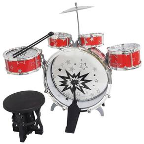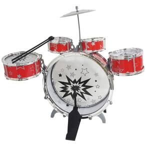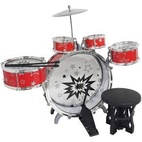 Itens inclusos: 1 Bumbo, 2 Tambor, 2 Tons, 1 Prato chimbal, 2 Baquetas, 1 Banco