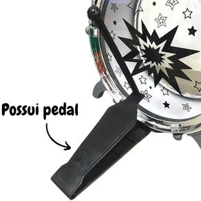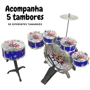 Itens inclusos: 1 Bumbo, 5 Tambor, 1 Prato, 2 Baquetas, 1 Banco