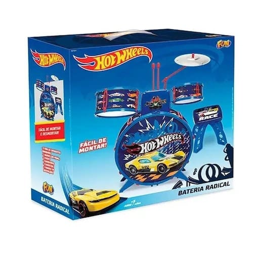 Chegou a verdadeira Bateria Radical para os meninões serem verdadeiros astros do rock Desperte as aptidões musicais do seu filho desde cedo. Repleto de detalhes, o brinquedo permitirá às crianças desenvolverem muitos sons legais. Vem com 3 tambores de tamanhos diferentes (pequeno, médio e grande), além de prato, baquetas e um banquinho. A Bateria Infantil Hot Wheels da Fun Divirta-se é igualzinha a uma bateria de verdade e é muito fácil de montar. Divirta-se e também chame seus amigos para curtir um som. Entre nessa Certificado pelos Órgãos Autorizados - OCP Produto Certificado: CE-BRI/INNAC-00143-01A - NM300/2002 - OCP 0008 Características: Conteudo da Embalagem : 2 tons de diferentes tamanhos, 1 bumbo com pedal, 1 prato, 1 banquinho, 2 baquetas e 1 Manual de intruções. Composição/material: Plástico Não recomendavel para crianças menores de 3 anos de idade por conter partes pequenas que podem ser engolidas. Aviso: As cores podem variar entre as imagens mostradas acima e o produto. Imagens meramente ilustrativas. Garantia: 3 meses de garantia contra defeito de fabricação.