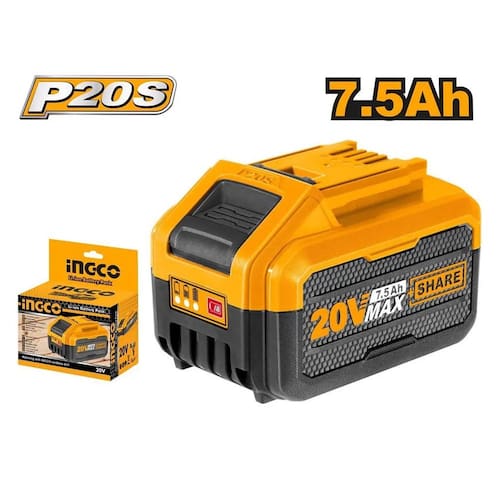Com capacidade de 7.5Ah, ela é compatível com toda a linha de ferramentas P20S da Ingco, oferecendo mais tempo de uso e menos trocas durante o trabalho. Seja para uso doméstico, oficinas, construção civil ou manutenção em geral, essa bateria entrega um desempenho confiável, mesmo em tarefas mais exigentes.