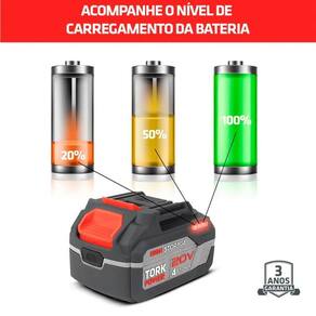 Bateria lithium 20v alto desempenho 10c 4ah ferramentas - super tork A bateria high storage tork power foi projetada para quem exige desempenho máximo em ambientes industriais. Com capacidade de 4ah e tecnologia de recarga rápida, ela oferece a autonomia necessária para manter seus equipamentos operando com eficiência. - características: Tensão da bateria: dc-20v Dimensões: 119x78x72mm Peso: 0,730kg Voltagem: 20v Capacidade: 4 ah Tempo de carregamento: 1 h Tecnologia de célula: lítio Corrente: 4.0ah Potência: 80w Capacidade da célula: 10c carregamento rápido Alto desempenho 10c Proteção bms sistema de gerenciamento de bateria Nível de bateria - itens inclusos: 1 bateria lithium 20v alto desempenho 10c 4ah - : 3 anos de de fábrica. Marca: super tork Modelo: be-1020-4ah-10c Código de barra: 7898533565874 Imagens meramente ilustrativas, podendo sofrer pequenas alterações. Todas as informações divulgadas são de responsabilidade do fabricante/fornecedor