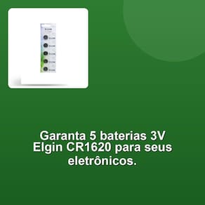 Ao escolher as baterias Lithium Elgin CR1620, você está optando por produtos de alta performance, resultado de um compromisso com inovação e durabilidade. Além disso, você conta com o respaldo de uma equipe dedicada, que prioriza sua satisfação e trabalha para que a entrega seja rápida e eficiente, refletindo nossa paixão pela excelência em cada etapa.