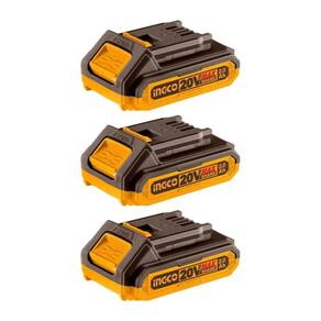 Kit com 3 Baterias INGCO 2.0ah Íon-Lítio - Alto Desempenho e Durabilidade Kit com 3 Baterias INGCO 2.0ah Íon-Lítio é a escolha ideal para quem busca maior autonomia e eficiência em suas ferramentas elétricas. Compatíveis com a linha de equipamentos INGCO 20V, essas baterias oferecem alta performance, recarga rápida e tecnologia de íons de lítio, que garante maior vida útil e zero efeito memória. Principais Características: Capacidade de 2.0ah - Equilíbrio perfeito entre autonomia e leveza. - Tecnologia Íon-Lítio - Sem efeito memória e maior durabilidade. - Compatibilidade - Uso em diversas ferramentas da linha INGCO 20V. - Recarga rápida - Mais produtividade no dia a dia. - Design compacto e leve - Mais conforto durante o uso. Seja para ou doméstico, esse kit garante que suas ferramentas estejam sempre prontas para o trabalho