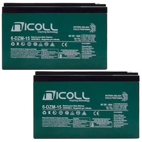 Kit especial com 2 Baterias de Chumbo para Bike Elétrica Ciclo Profundo 12V 15Ah 6-DZM-15 Nicoll
