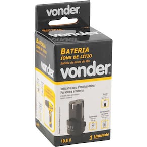 Bateria para Parafusadeira/furadeira a bateria, 10,8 V, e aplicável com o carregador bivolt automático, PFV 108, VONDER 1 Bateria Indicada para a parafusadeira/furadeira PFV 108 VONDER Bateria de íons de lítio, garantindo alta eficiência de operação Tensão V :10,8 V Tipo de bateria:Bateria de íons de lítio E CDC : legal: 90 dias + contratual: 9 meses Marca: Não Informado