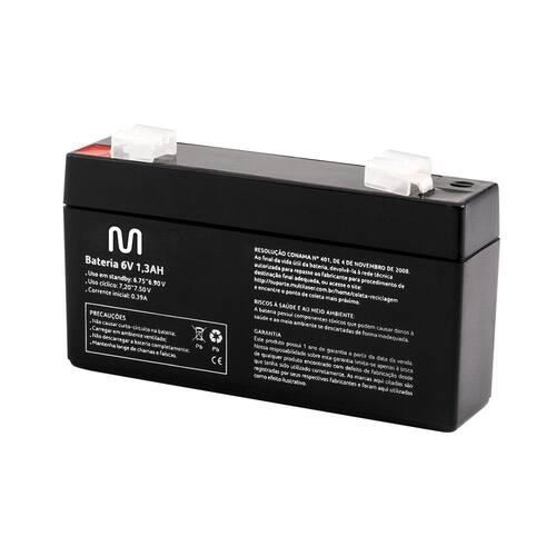 Marca: Multilaser Modelo: Bateria Powertek 6V 1,3AH - EN069 Cor: Preto Uso em Stand By: 6,75~6,90V Uso Cíclico: 7,25~7,5V Corrente Inicial: 0,39A Manutenção: Livre de manutenção Tipo de Terminal: F1 Capacidade -Ah-: 1,3Ah Garantia: 12 meses