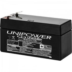 Bateria chumbo-ácida regulada por válvulas, produto de última geração para uso em sistemas de alarme, Iluminação de Emergência, Nobreak, UPS, Portões Eletrônicos, Iluminação de Vídeo, Equipamentos Médicos e Náuticos. Composta com liga chumbo-cálcio, separador de manta de microfibras de vidro totalmente selada proporcionando utilização em qualquer posição.Voltagem:12V Amperagem:1,3Ah Dimensões:98x45x52x59mm Pesquisa:bateria|selada|12v|1,3a|up1213|unipower|up1213|up 12 13|