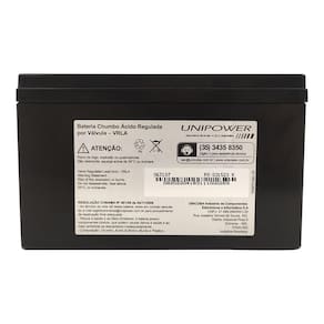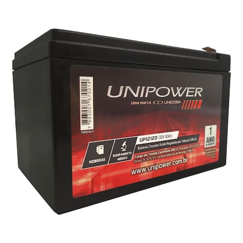 O aumento de equipamentos que requerem bateria está crescendo cada vez mais, por isso, a Bateria Selada VRLA 12V 12,0AH F250 UP12120 06C027 foi produzida para suprir essa necessidade. Ela pode ser utilizada em sistemas de alarmes, brinquedos elétricos, nobreaks (UPS), energia solar e eólica, telecomunicações, PABX, cerca elétrica, equipamentos médicos, iluminação de emergência, balanças, relógios de ponto, rastreadores, elevadores etc. Sua Válvula VRLA (Valve Regulated Lead Acid), placa de chumbo ácido regulada por válvula e selada, controla automaticamente a pressão interna dos gases impedindo a emissão de vapores ácidos. Já o separador AGM garante a retenção do eletrólito, possibilitando seu uso em várias posições.