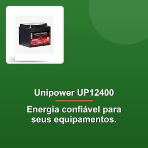 A Bateria Unipower 12V 40Ah UP12400 M6 V0 é a solução perfeita para quem busca desempenho, confiabilidade e versatilidade em sistemas que demandam energia constante e segura. Projetada especialmente para aplicações como nobreaks, alarmes, sistemas de segurança, iluminação de emergência, telecomunicações, energia solar, equipamentos médicos e PABX, esta bateria se destaca por sua eficiência e durabilidade.