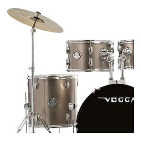 Bateria Vogga Pulse VPD220 22 CHR Chrome Descrição A Bateria Vogga Pulse VPD220 22 CHR Chrome combina visual moderno e construção robusta para bateristas de todos os níveis. Com cascos em Poplar e ferragens na cor preta, oferece um som encorpado e excelente durabilidade. O kit inclui tons de 10x08 e 12x09, surdo de 16x16, bumbo de 22x16 e caixa de 14x5,5, garantindo versatilidade para diferentes estilos musicais. Além disso, acompanha banco, pratos, pedal e um par de baquetas, proporcionando um conjunto completo para quem deseja uma experiência musical de alta qualidade. Especificações Técnicas: - Cor: CHR Chrome - Material dos cascos: Poplar - Ferragens: Pretas - Pés duplos super-resistentes Dimensões: - Tons: 25,4 cm x 20,3 cm e 30,5 cm x 22,9 cm 10 e 12 - Surdo: 40,6 cm x 40,6 cm 16 - Bumbo: 55,9 cm x 40,6 cm 22 - Caixa: 35,6 cm x 14 cm 14 Itens Inclusos: - 2 Tons 10 e 12 - 1 Surdo: 16 - 1 Bumbo: 22 - 1 Caixa 14 - 1 Banco - Pratos - 1 Pedal de bumbo - 1 Par de baquetas : 3 meses de pelo fabricante. Origem: China. Imagens meramente ilustrativas, podendo haver variação de cor.