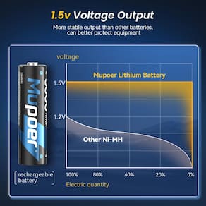 - Baterias de lítio AA de alta tecnologia: as baterias de íon de lítio têm as características de capacidade de alta densidade, longa vida útil, baixa taxa de autodescarga e 0% de conteúdo de metais pesados. É uma fonte de energia verde muito ecológica