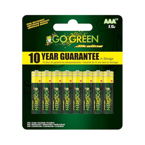 - Pilhas AAA alcalinas: as pilhas AAA alcalinas GoGreen Power são a escolha ideal para todos os seus dispositivos de alta drenagem. Este pacote de 24 pilhas AAA é a escolha perfeita para clientes ecologicamente corretos.