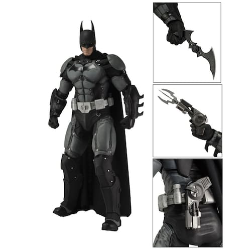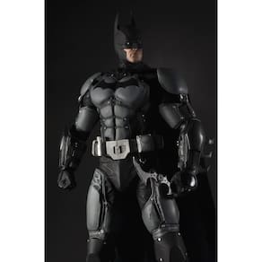 Direto de Batman: Arkham Origins, o capítulo mais recente da saga Arkham, Batman tem 18? (aproximadamente 46 centímetros) de altura e apresenta mais de 25 pontos de articulação, uma capa de tecido real e acessórios que incluem Batarang e arpéu.