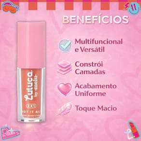 Benefícios PrincipaisO Batom, Blush e Sombra 3x1 Luluca By Melu Got It All Get Ready é perfeito para o dia a dia, proporcionando retoques rápidos e práticos em qualquer lugar. Ideal para criar maquiagens completas para eventos especiais, sua versatilidade permite que você esteja sempre pronta, seja para um look casual ou algo mais elaborado, aplicando nas bochechas, lábios ou pálpebras.