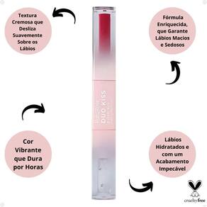 O Batom Duo Ruby Rose Duo Kiss DK09 HB-L6203-9 é a escolha ideal para quem deseja um visual versátil e prático com acabamento impecável. Este batom conta com duas opções em um único produto: um lado é um batom líquido matte, de alta pigmentação, e o outro lado é um gloss incolor, que proporciona brilho e hidratação aos lábios.