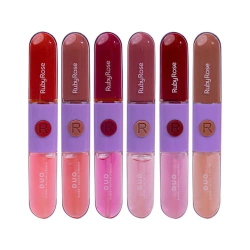 O Batom Duo com Gloss Líquido da Ruby Rose é leve e hidratante, desliza sem esforço nos lábios deixando uma cor intensa e uma sensação aveludada e confortável o dia todo, sem ressecar ou craquelar. Proporciona alta cobertura em apenas uma camada com efeito matte, longa duração e alta fixação.